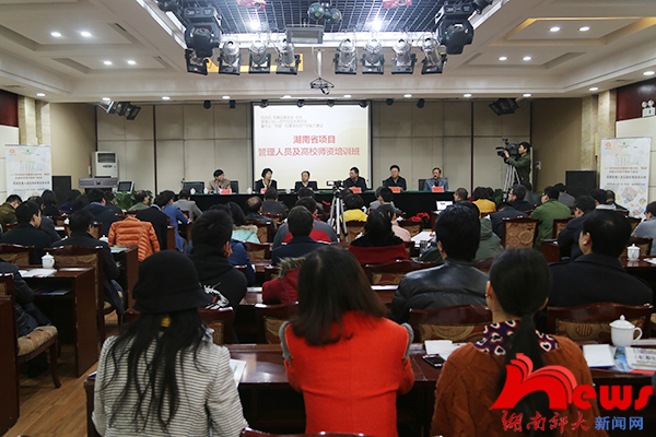 3月15日上午,由民政部和李嘉诚基金会合作的“展璞计划”——农村社区发展项目暨村女“两委”和基层民政干部能力建设湖南省项目管理人员及高校师资培训班开班仪式在我校红楼五楼会议室举行。民政部基层政权和社区建设司副司长朱耀垠,李嘉诚基金会项目经理陈瑜,湖南省民政厅政权和社区建设处处长游劲民,我校副校长周俊武出席。开班仪式由我校继续教育学院院长张明主持。